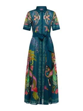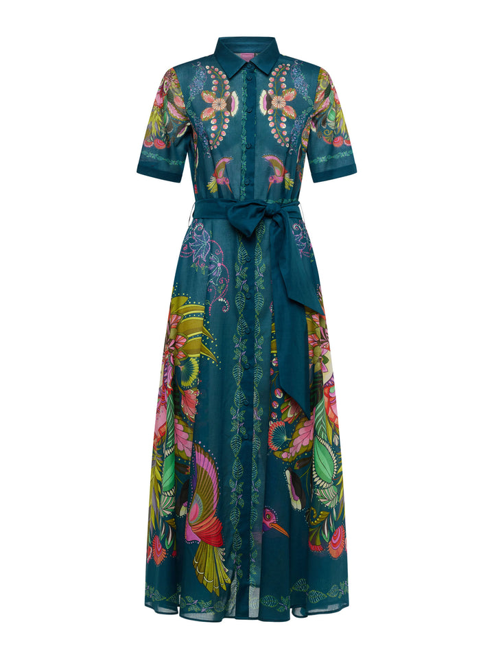 COTTON CHEMISIER DRESS HUMMINGBIRD PRINT