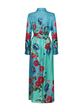SILK CHEMISIER DRESS RED POPPIES PRINT