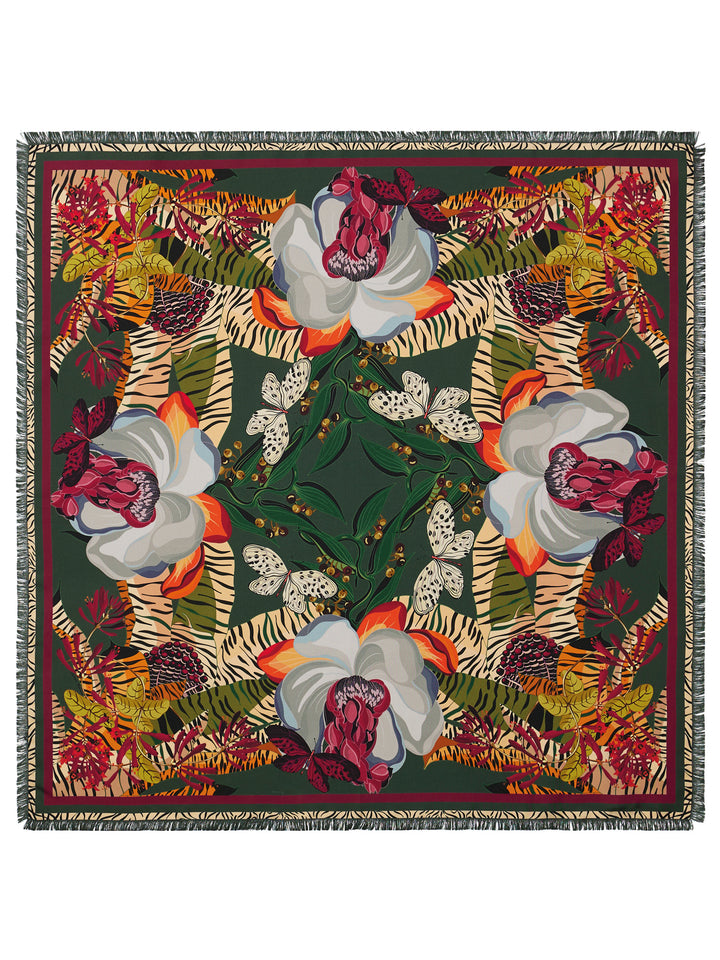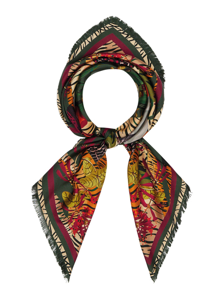 Silk 90x90 carrŽ foulard with handrolled hem.