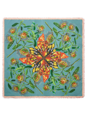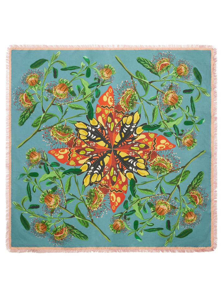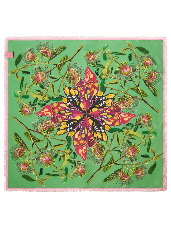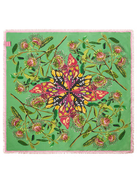 DOUBLE PRINTED SILK 90X90 CARRÉ SCARF PASSION FLOWER PRINT