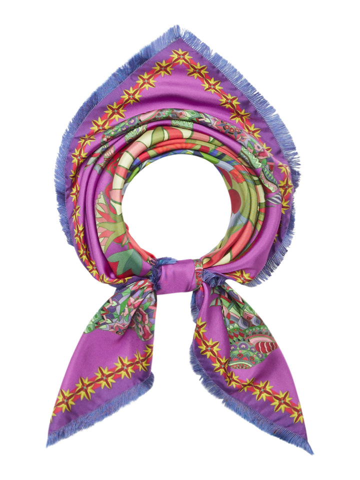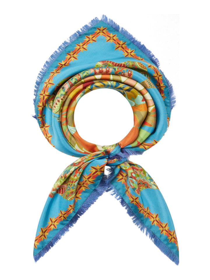 Silk 90x90 carré foulard with fringed hem. Elephants print.