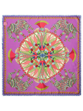 DOUBLE PRINTED SILK 90X90 CARRÉ SCARF ELEPHANTS PRINT