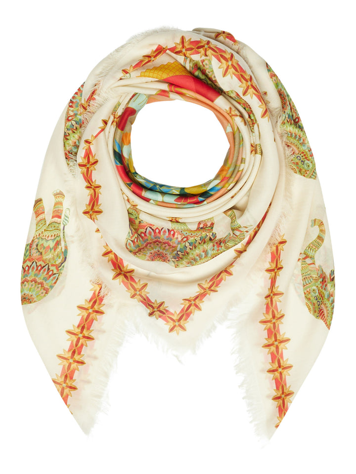 COTTON-SILK 135X135 CARRÉ SCARF ELEPHANTS PRINT