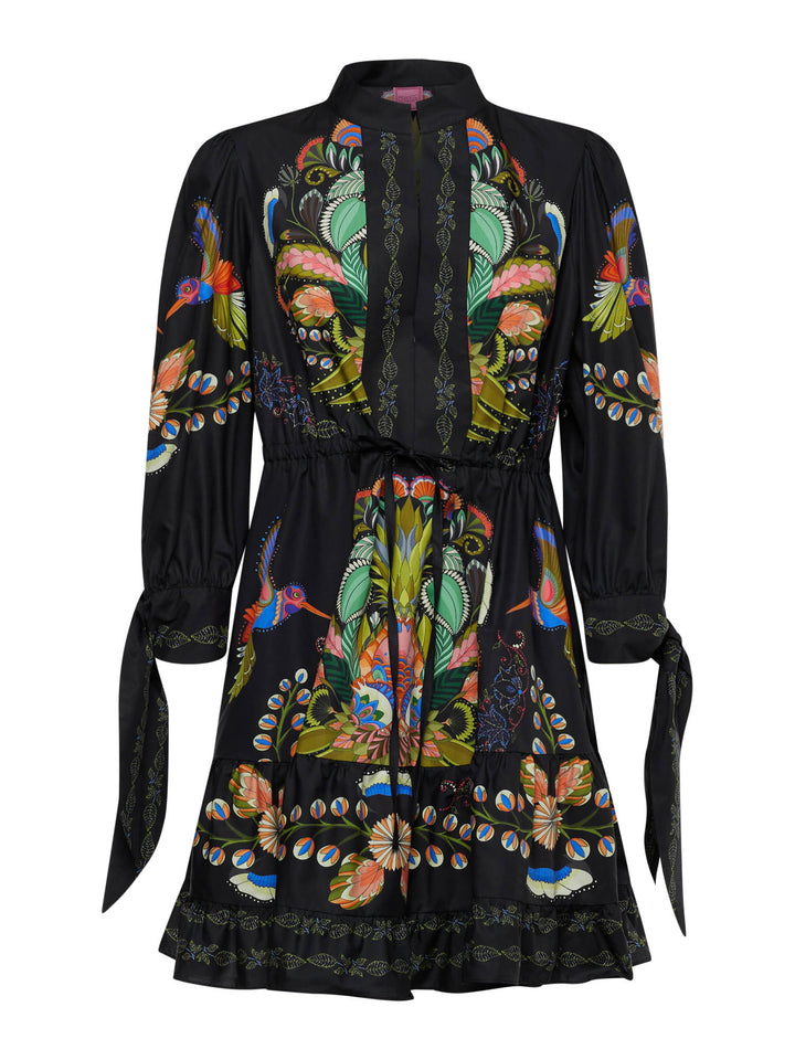 COTTON SHORT DRESS HUMMINGBIRD PRINT