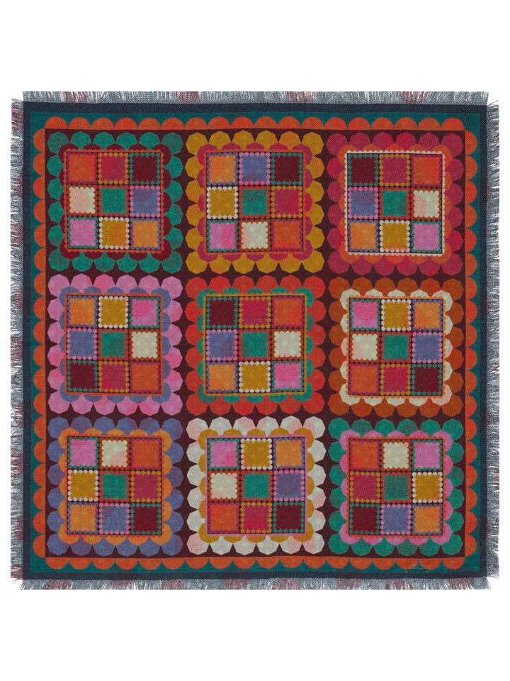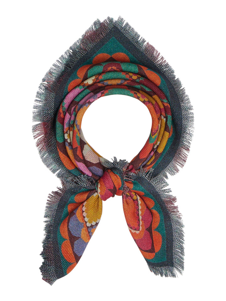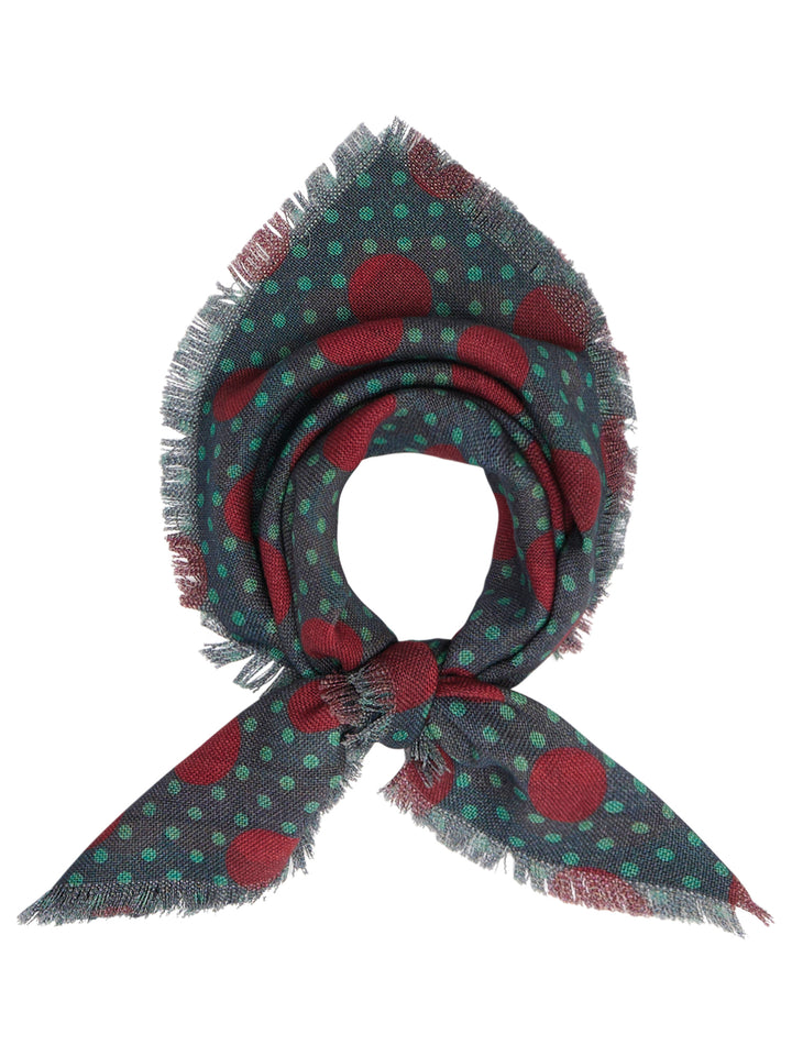 Wool 68x68 carrŽ bandana with fringed hem. Double side printed.