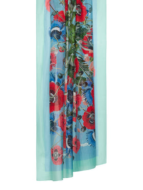 COTTON-SILK 135X190 SCARF RED POPPIES PRINT
