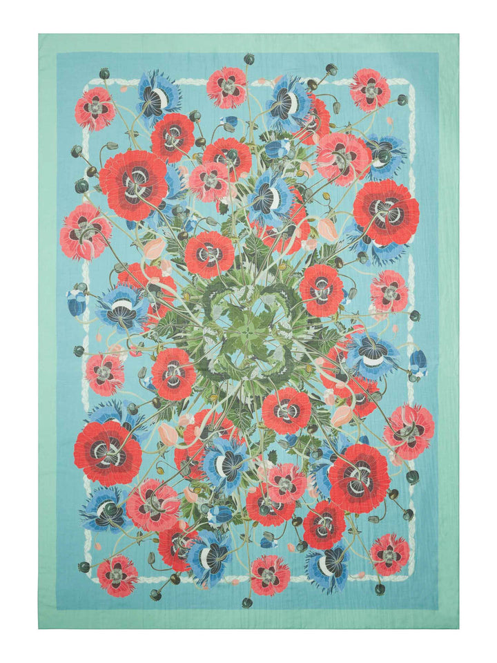 Cotton-Silk 135x190 scarf. Red poppies print.